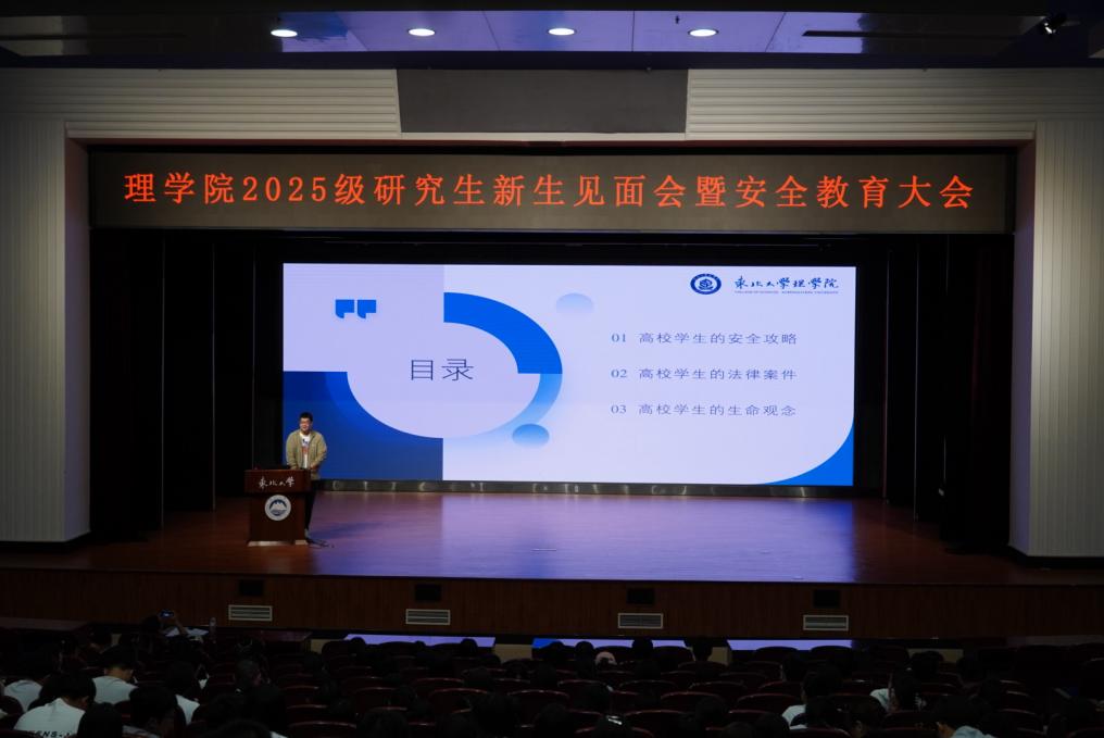 为帮助2025级研究生新生尽快适应校园环境、明确学习目标、了解校规校纪,东北大学理学院于今年9月组织开展了一系列新生入学教育活动。学院始终秉持“以生为本”的理念,将实效性与人文关怀相结合,全面覆盖迎新服务、入学培训、安全教育与暖心关怀等多个方面,切实助力新生顺利开启研究生阶段的学习与生活。